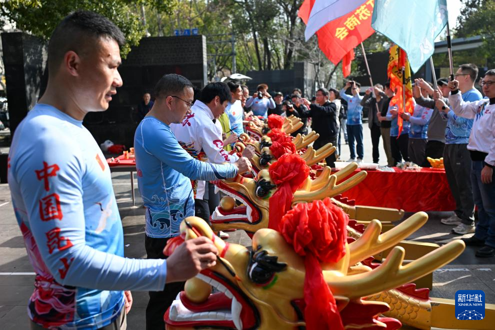3月1日,江苏省昆山市龙舟运动协会在赛龙舟比赛前进行龙舟点睛仪式。