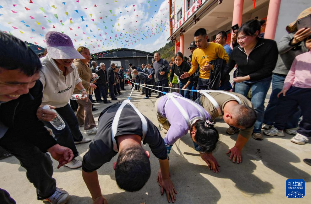 3月1日,在广西桂林市龙胜各族自治县龙胜镇都坪村,村民参加“大象拔河”比赛。