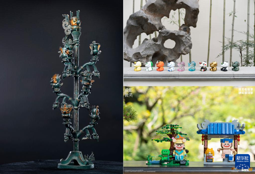 2018年,曾舟辞掉游戏设计的工作,成为独立设计师。一次去三星堆博物馆参观时,馆内的青铜文物造型让曾舟萌生了创作的灵感。他以青铜神树、青铜纵目面具、青铜兽面等文物作为创作蓝本,结合当下的潮玩元素,将模型的身体比例做适当调整,让潮玩作品拥有“千里眼”“顺风耳”和“天然呆”的卡通感,设计的文创作品时尚新潮、俏皮可爱。
