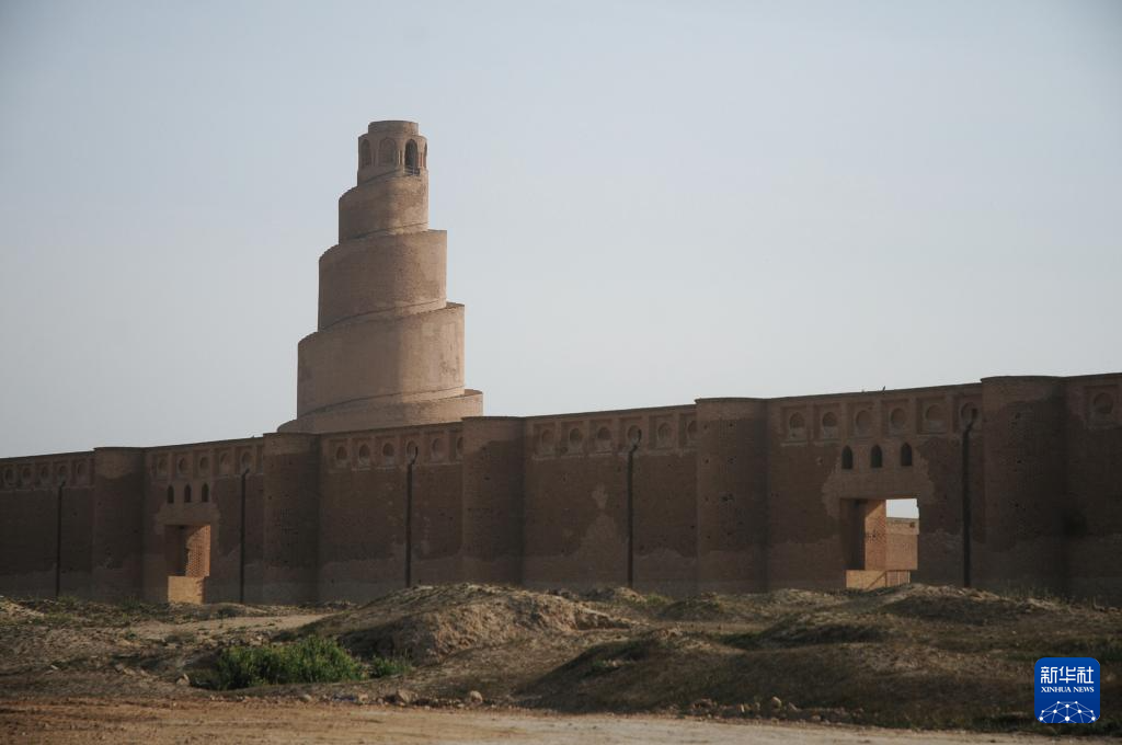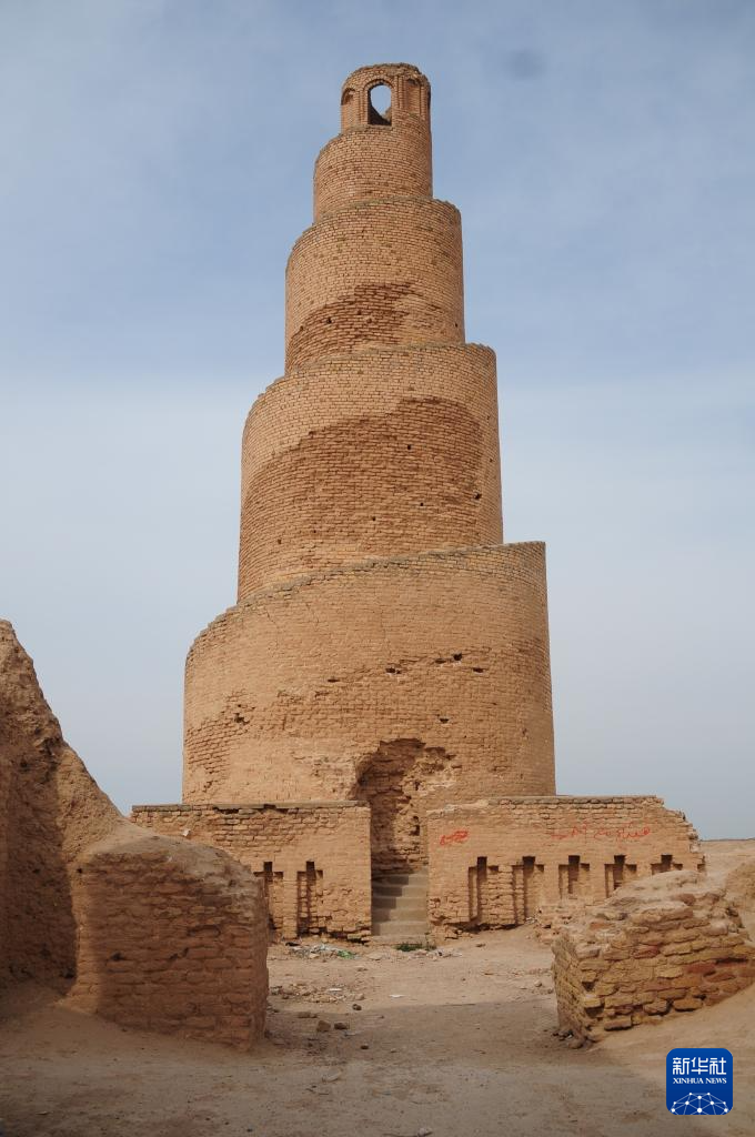 这是3月3日在伊拉克萨拉赫丁省拍摄的萨迈拉大清真寺和螺旋宣礼塔。