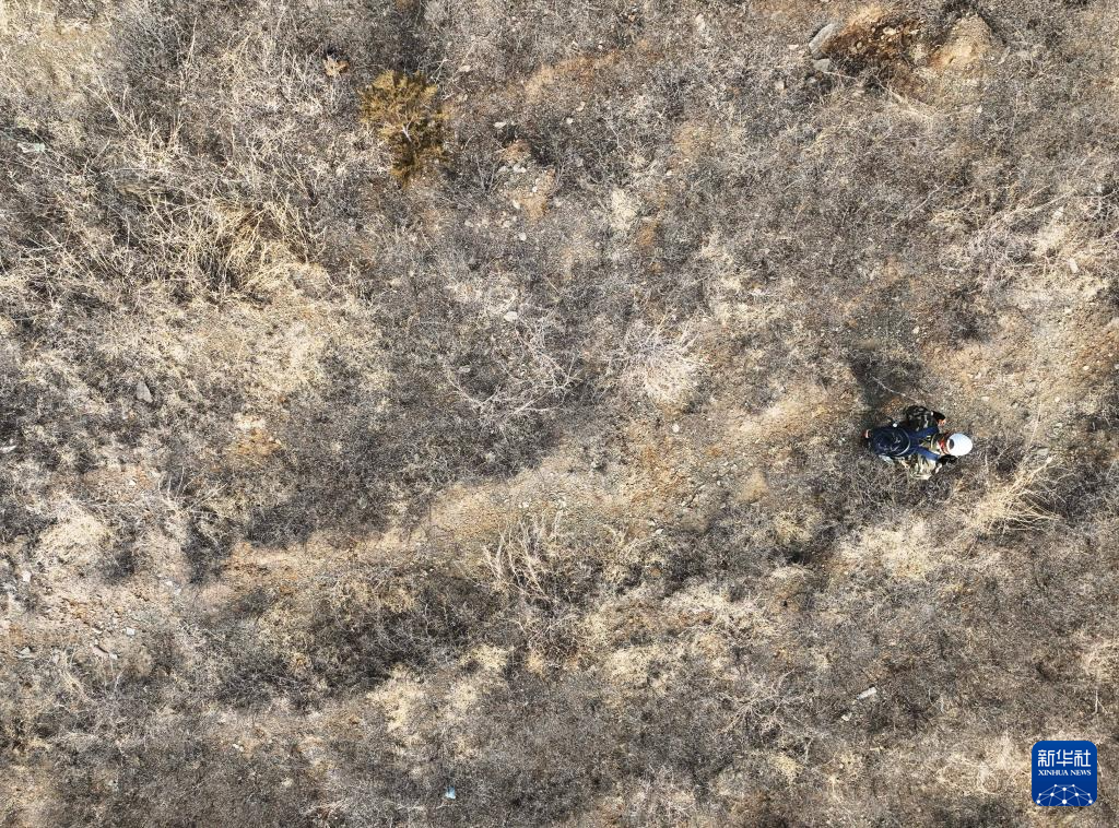 3月11日,在辽宁省朝阳市双塔区,考古人员在调查红山文化遗址(无人机照片)。