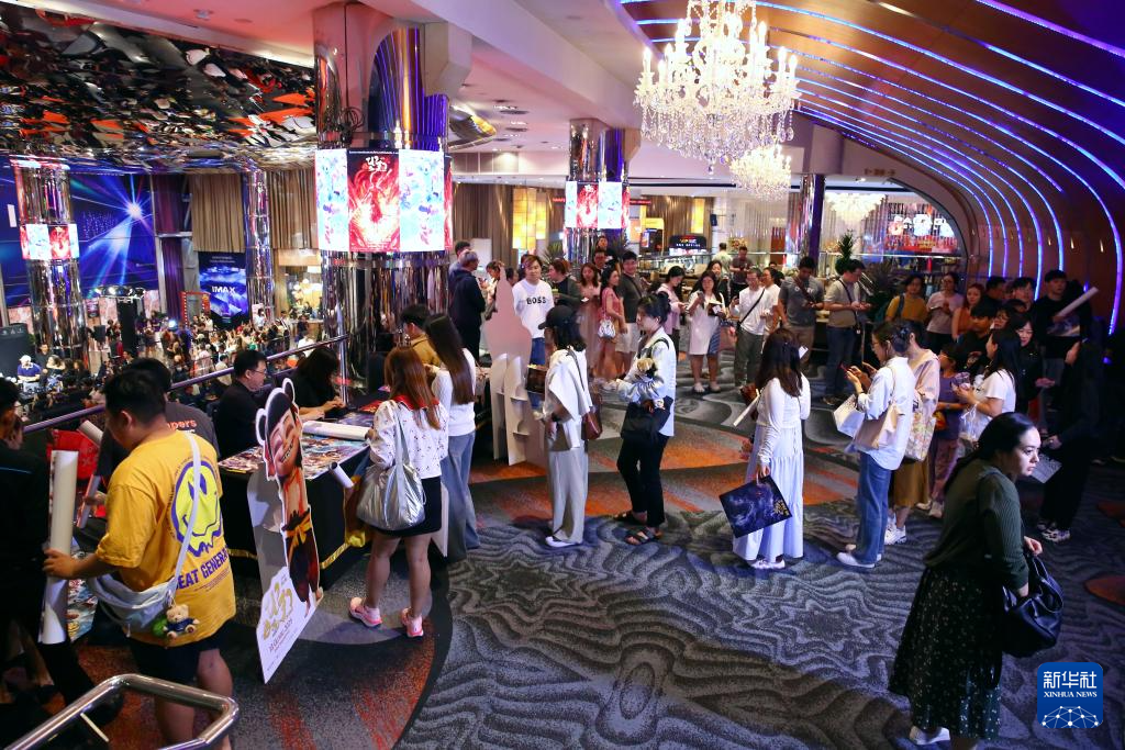 3月12日,在泰国曼谷暹罗百丽宫,参加《哪吒2》首映活动的观众排队领取电影海报。