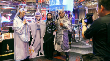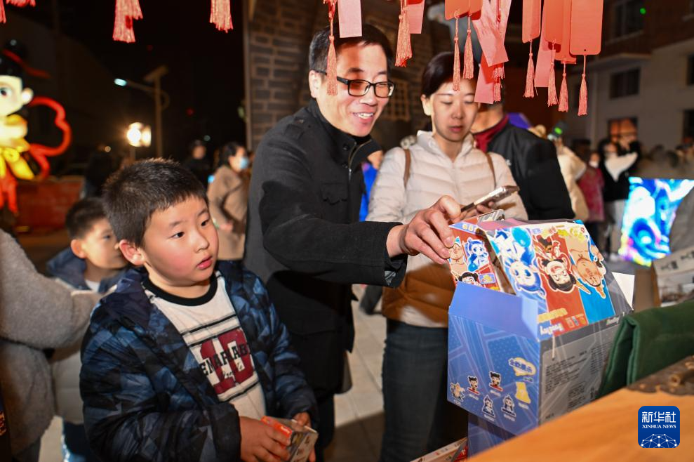 游客在天津哪吒小镇购买哪吒主题商品(3月16日摄)。