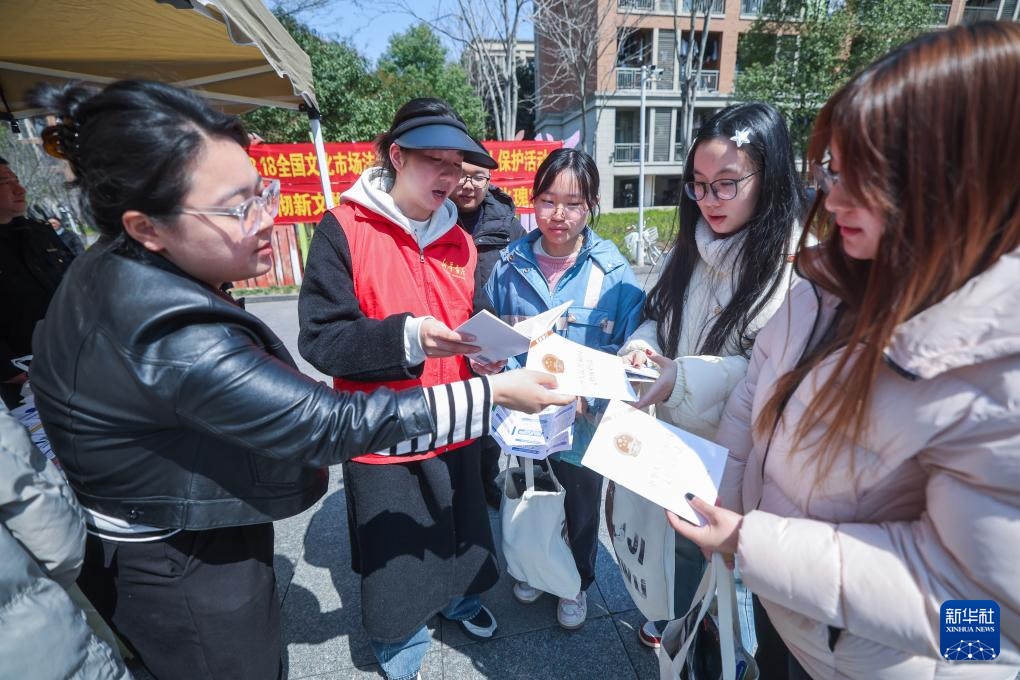 3月18日,诸暨市文广旅游局的工作人员和新华书店志愿者在浙江农林学院暨阳学院向在校师生宣传文化市场法律、文物保护相关知识。