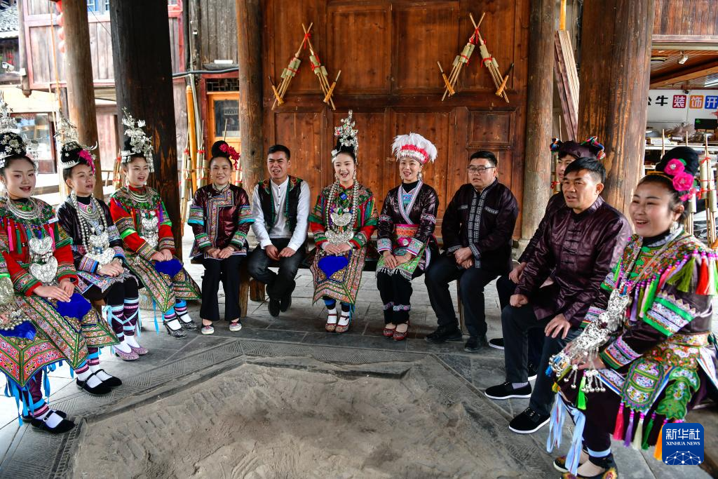 3月18日,侗族群众在贵州省黎平县肇兴侗寨给游客演唱侗族大歌。
