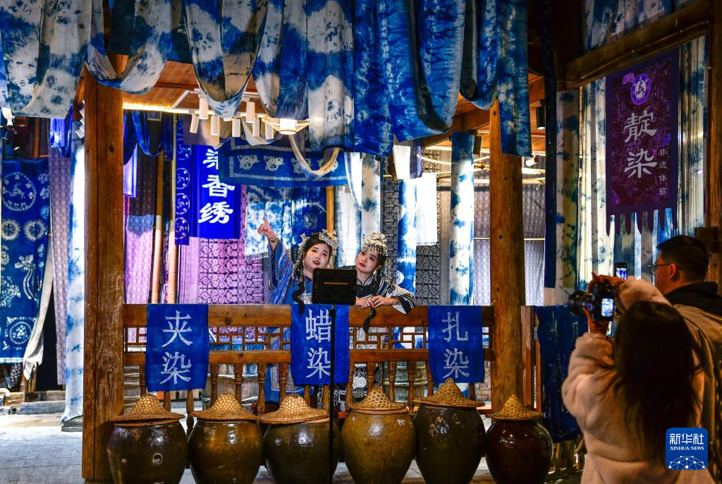 3月18日,游客在贵州省黎平县肇兴侗寨里的侗族文化展示中心拍摄。
