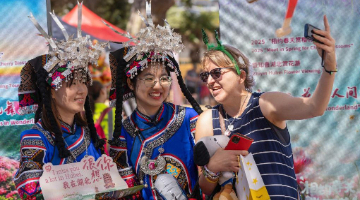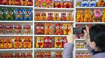 3月20日,人们在北京王府井工艺美术大厦内观看非遗文创产品展示。