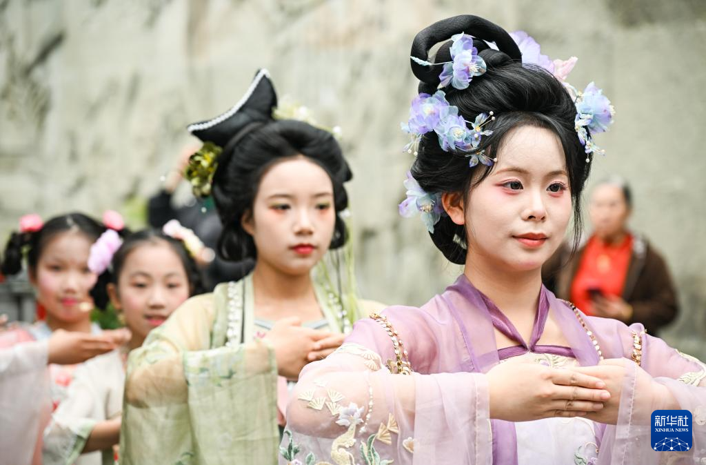 3月22日,演员在重庆璧山“儒雅璧韵·璧玉唐礼”传统文化礼仪展示活动现场表演舞蹈。