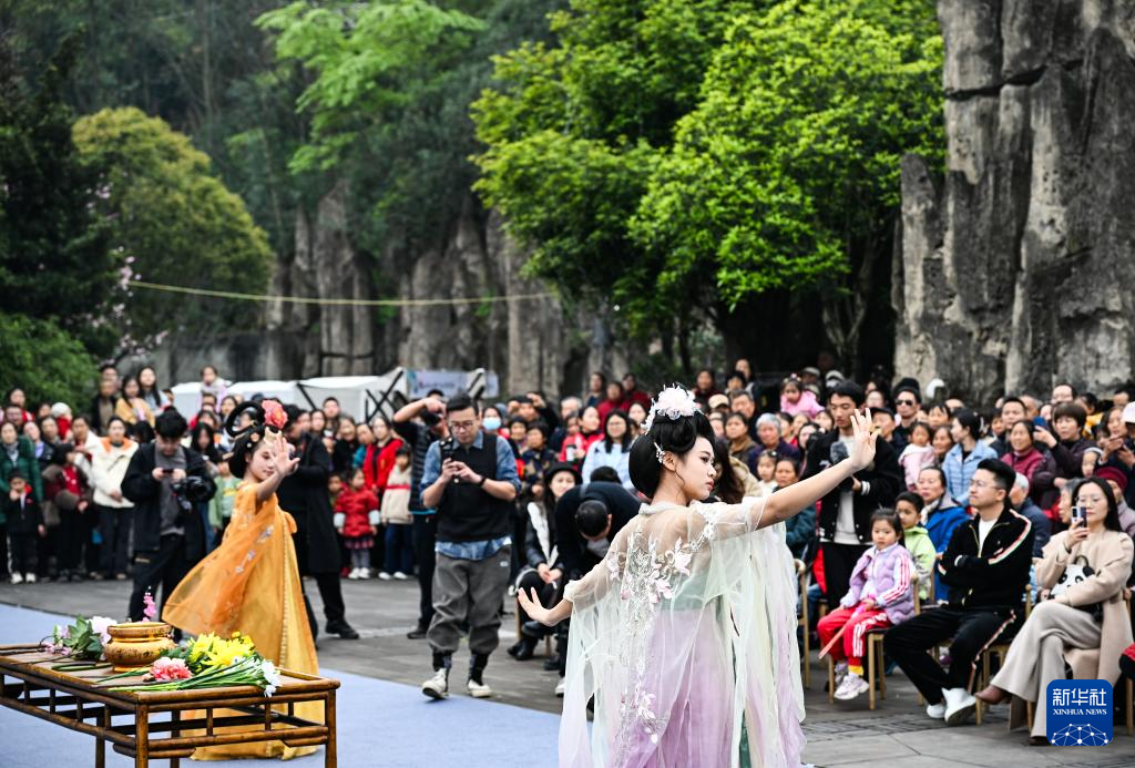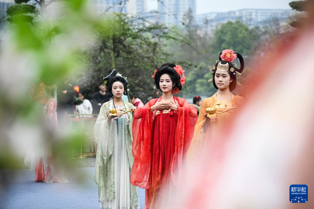 这是3月22日在重庆璧山秀湖公园拍摄的“儒雅璧韵·璧玉唐礼”传统文化礼仪展示活动现场。