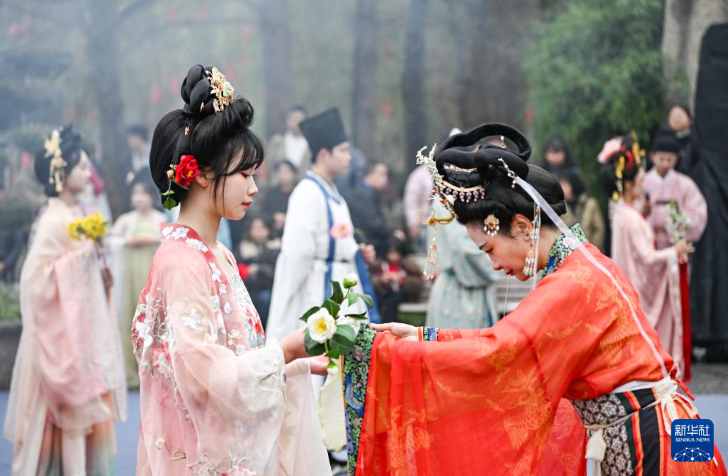 当日,重庆市璧山区在秀湖公园举办“儒雅璧韵·璧玉唐礼”传统文化礼仪展示活动,让观众沉浸式观赏、体验传统礼仪,感受中华传统文化的独特魅力。