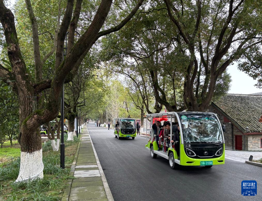 游人乘车游览洪江市安江农校纪念园(3月17日摄)。新华社记者 余春生 摄