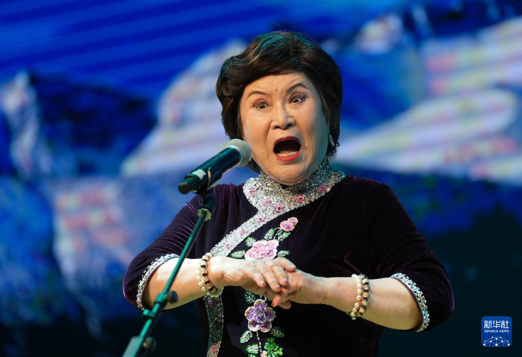 3月26日,张艳英(左)表演东北大鼓《小拜年》。