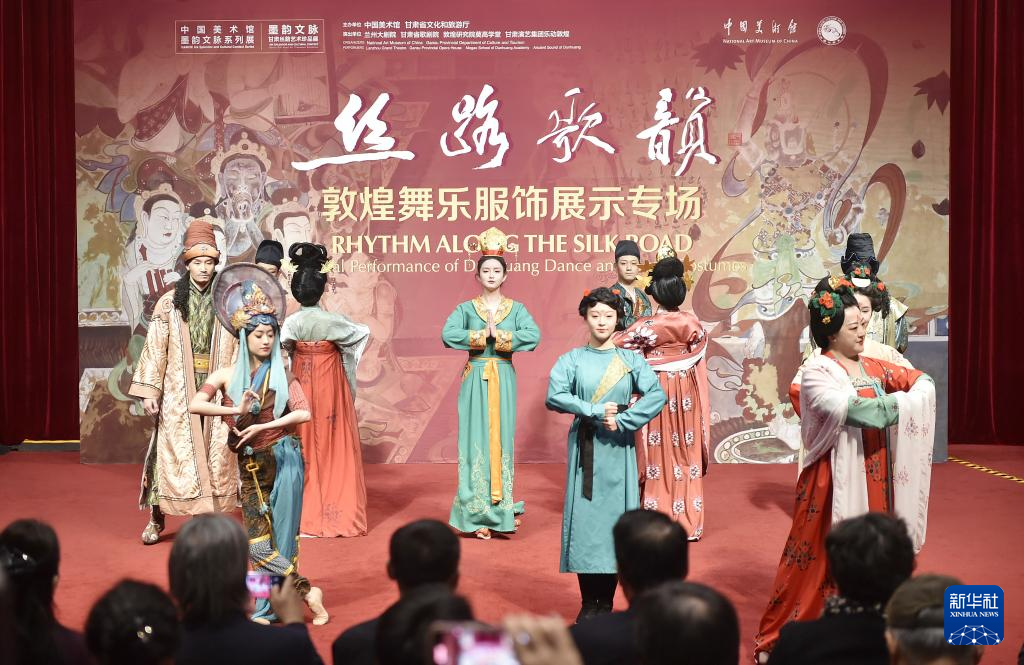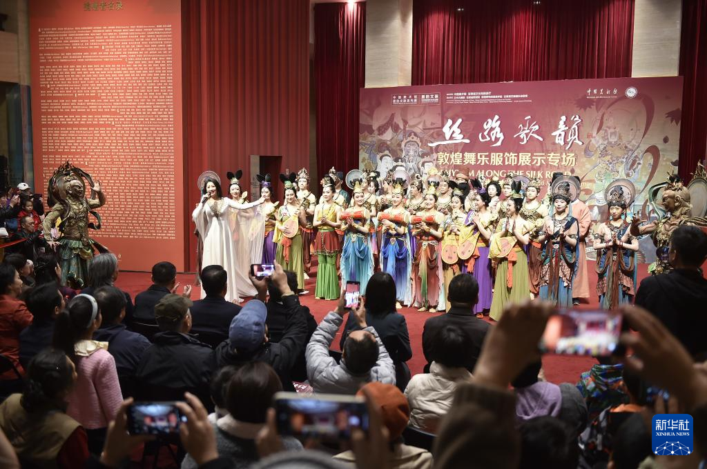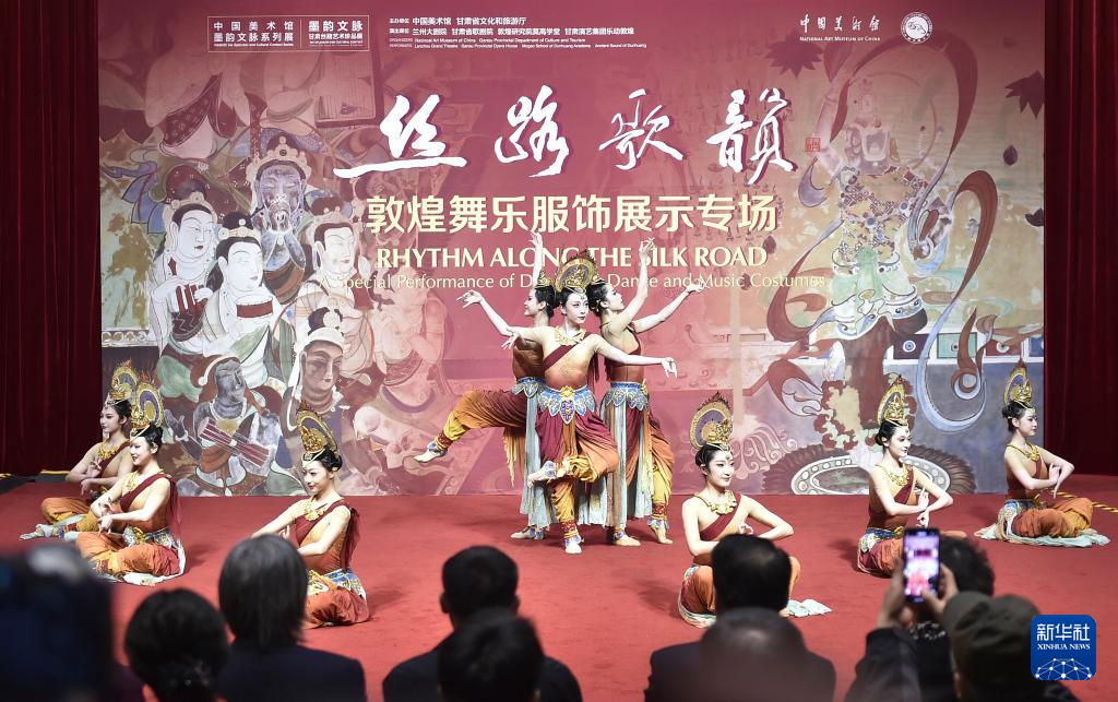 当日,“丝路歌韵:敦煌舞乐服饰展示专场”活动在北京中国美术馆举行。作为“墨韵文脉——甘肃丝路艺术珍品展”的延伸内容,该专场活动由中国美术馆、甘肃省文化和旅游厅联合主办,以歌舞表演与服饰展示相结合的方式,展现敦煌艺术的精神内涵和丝路艺术的独特魅力。