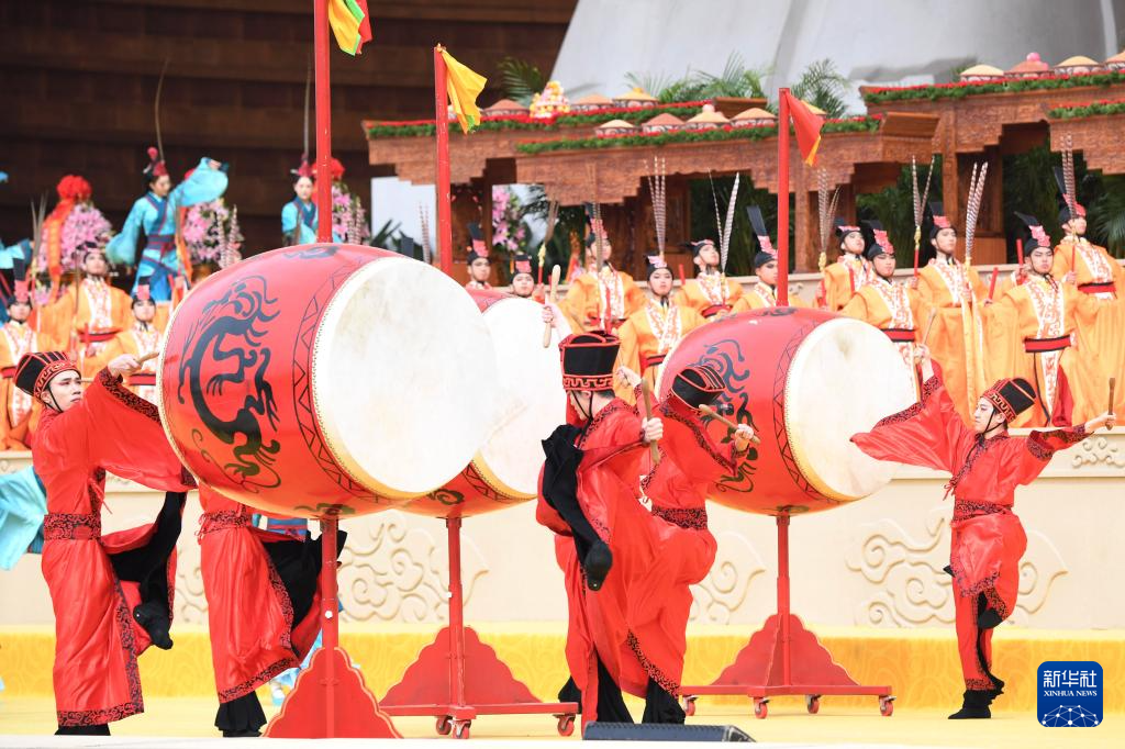 3月31日,演员在乙巳年黄帝故里拜祖大典上表演。