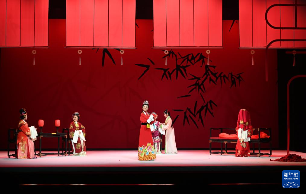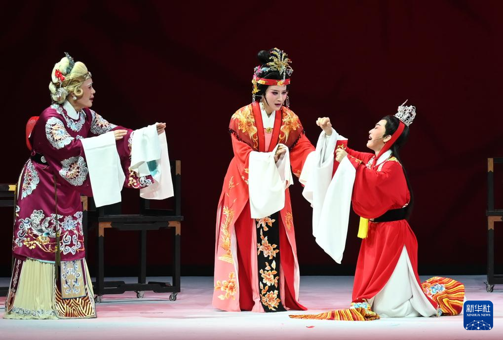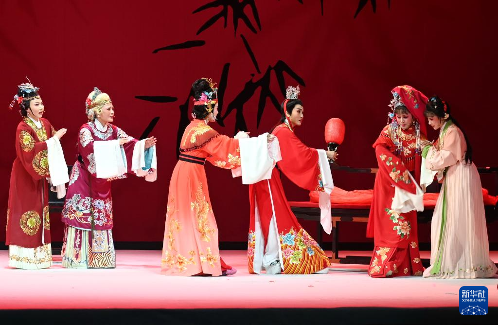 3月29日,演员表演越剧《红楼梦》中的《金玉良缘》选段。