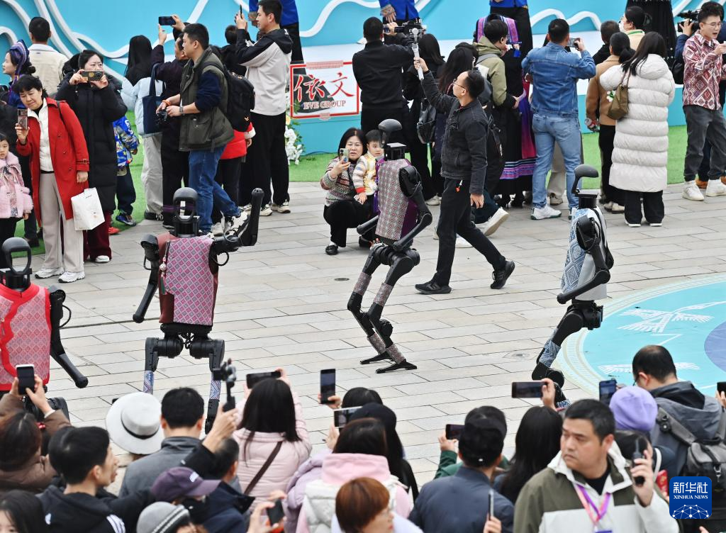3月31日,机器人在开幕式现场跳舞。