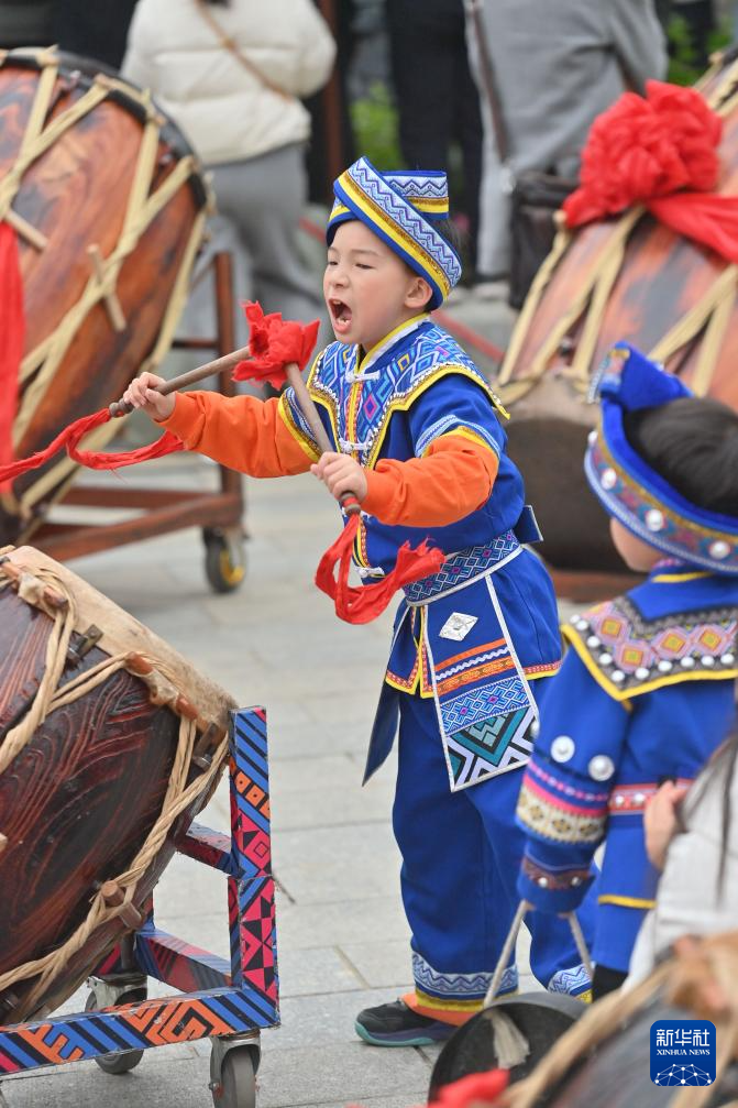 3月31日,演员在活动现场表演会鼓。