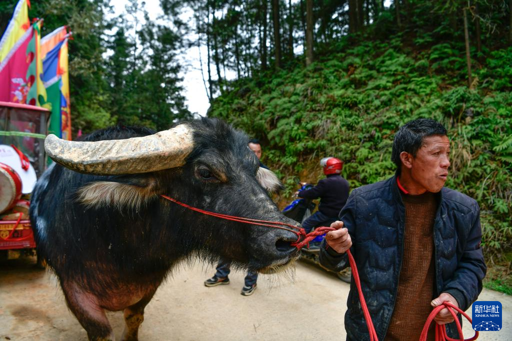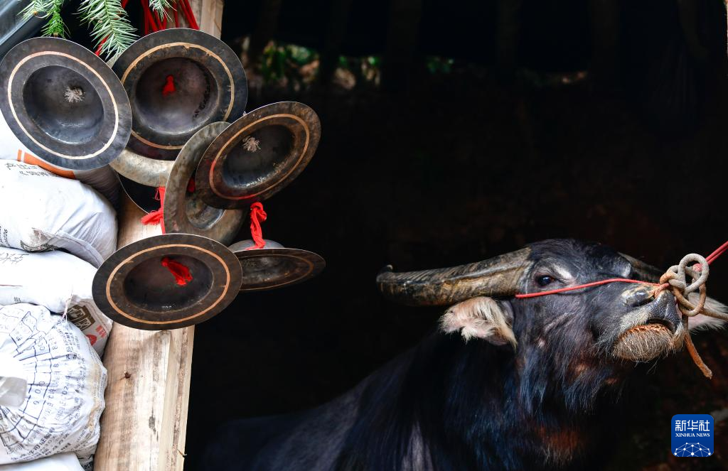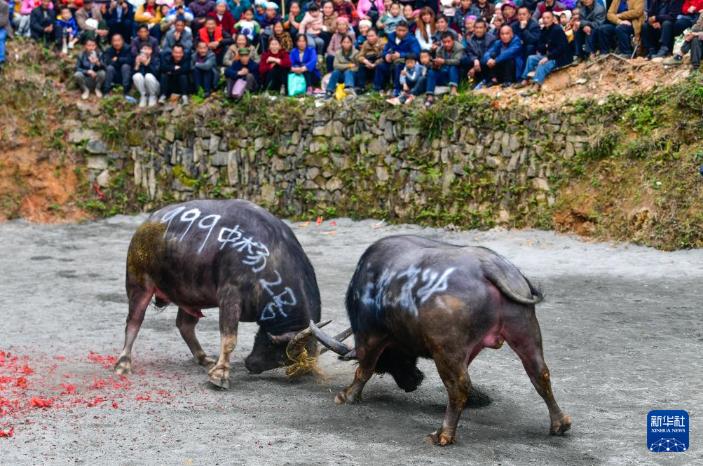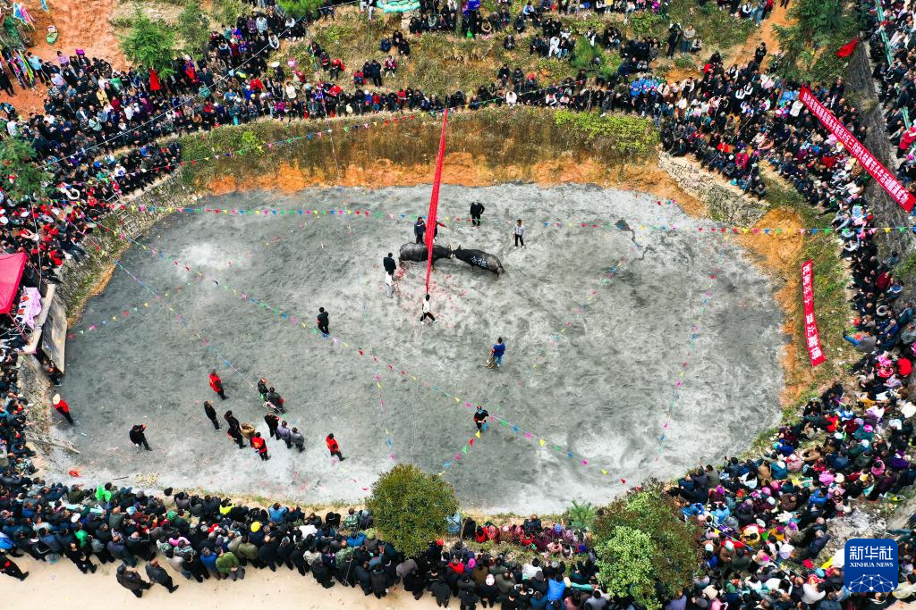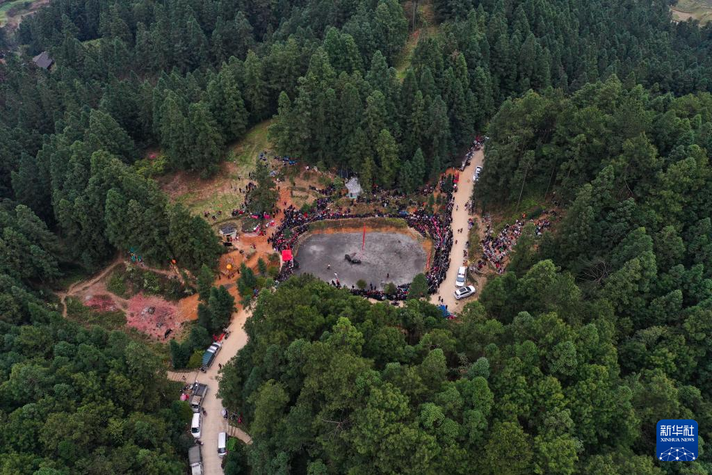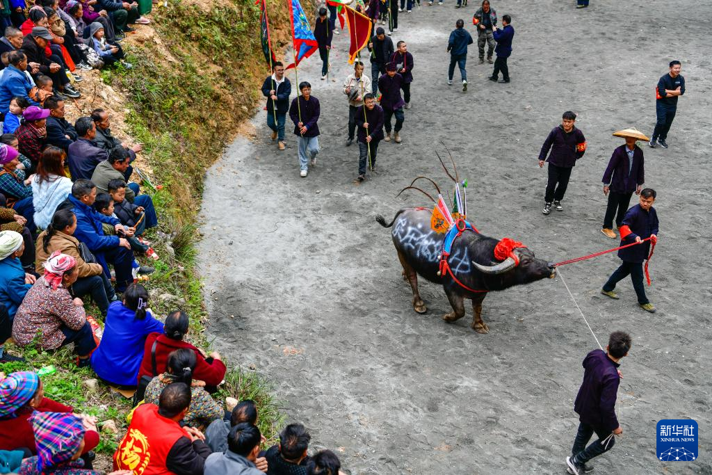 当日,贵州省黔东南苗族侗族自治州锦屏县固本乡举办2025年新民片区三月初九牯藏节斗牛民俗活动,来自各苗乡侗寨的人们齐聚斗牛塘,斗牛欢庆牯藏节。