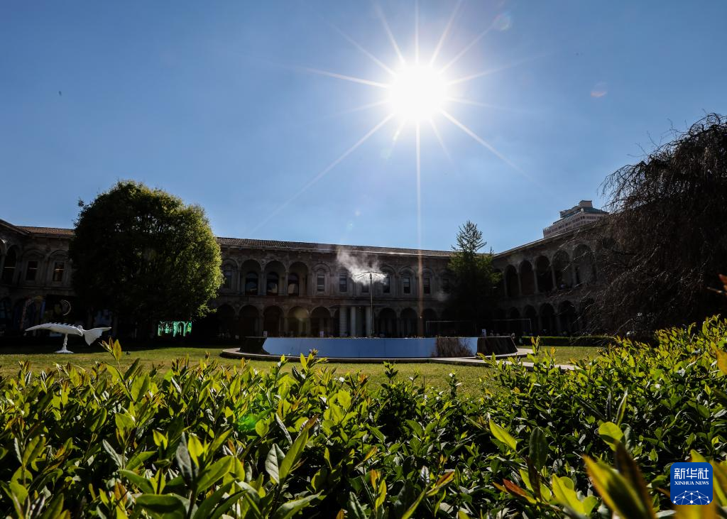4月11日,在意大利米兰国立大学,人们参观中国设计师陈耀光的镜面装置作品《礼物》。
