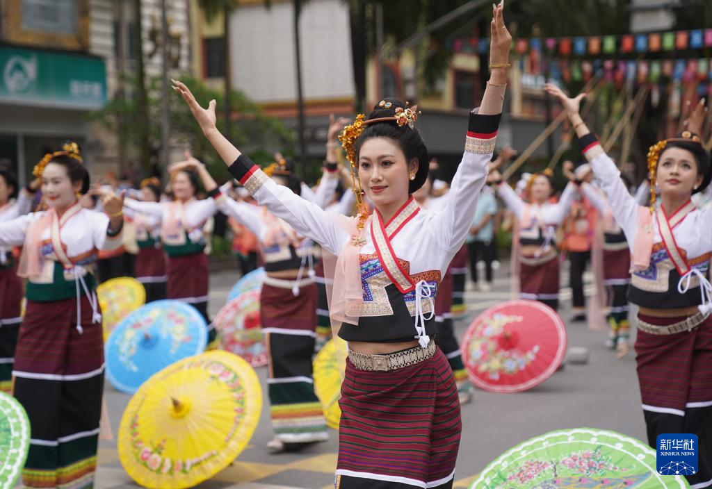 4月14日在云南省景洪市拍摄的民族民间传统文化大游演现场。