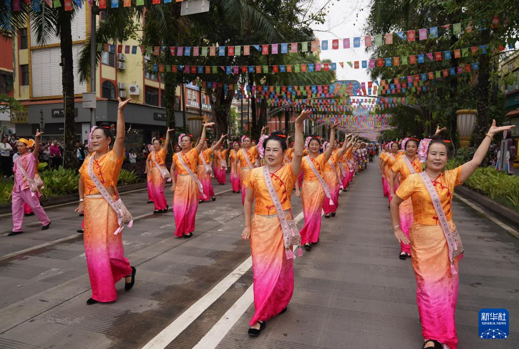 当日,云南省西双版纳傣族自治州在景洪市举办民族民间传统文化大游演,庆祝傣历新年的到来。