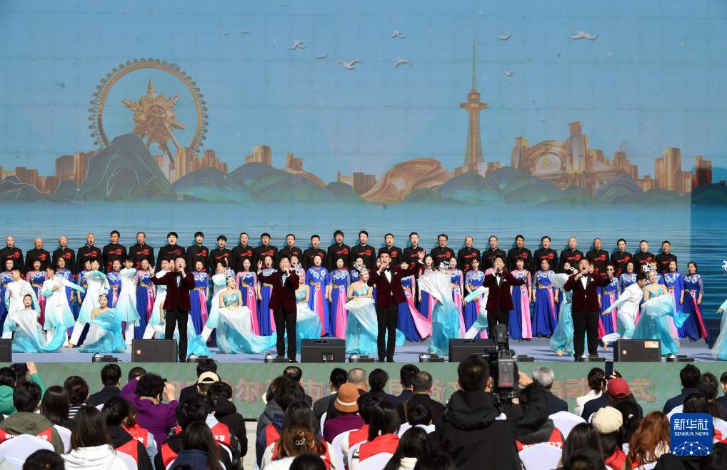 4月16日,演职人员在2025哈尔滨市开江民俗文化周启动仪式现场合唱《大开江》。