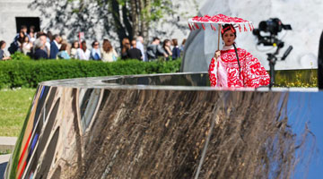 4月15日,在位于纽约的联合国总部,意大利常驻联合国代表团的代表在2025年联合国中文日活动上朗诵《春晓》。