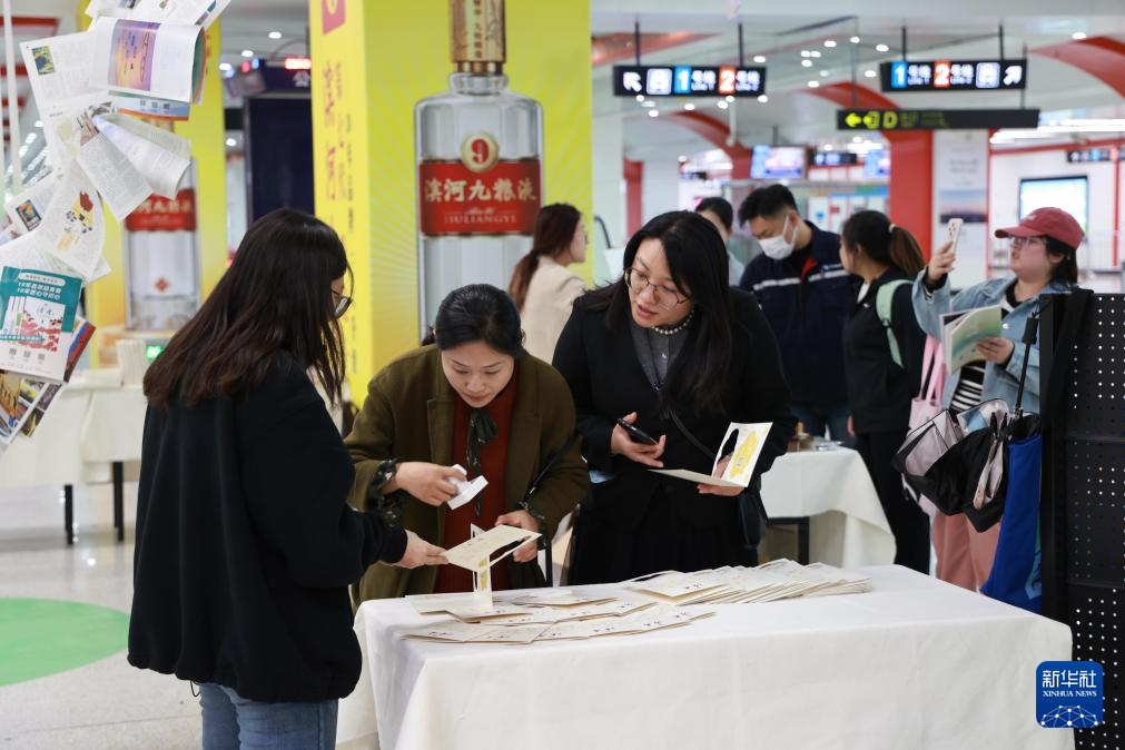 4月21日,市民在甘肃省兰州市地铁1号线东方红广场站“读者·文化生活岛”主题快闪店内体验集章打卡文创活动。