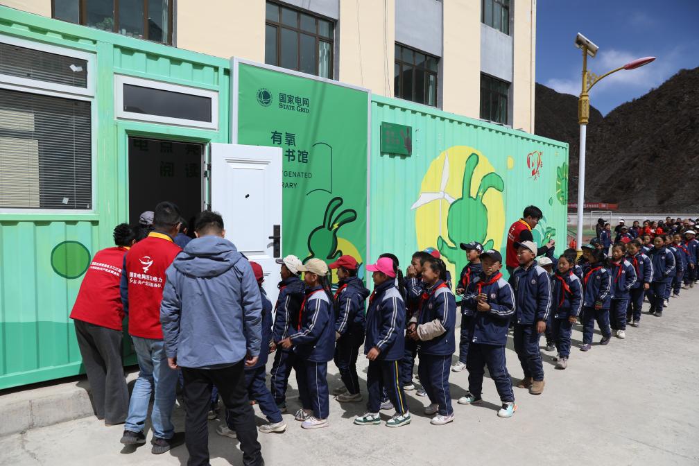 据了解,这座图书馆由国家电网杭州供电公司“点亮玉树”公益团队捐赠,从杭州跨越千里来到玉树,图书馆本体由一个占地36平方米的集装箱改造而成,顶部配置4.84千瓦分布式光伏,接通后可满足基础用能需要。