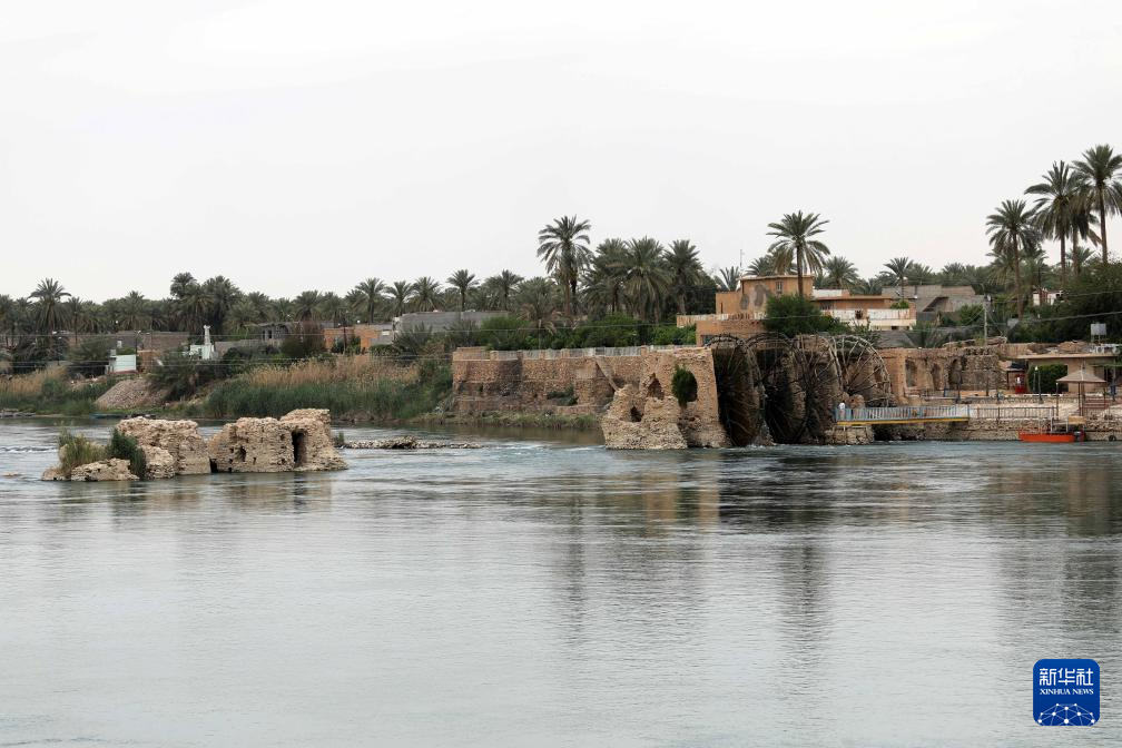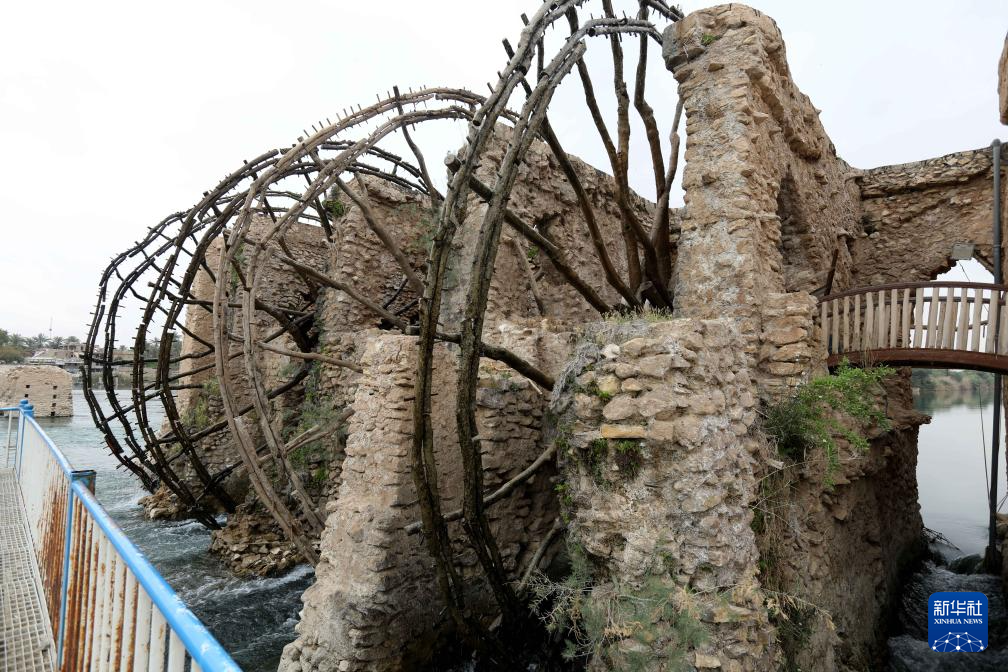 这是4月21日在伊拉克安巴尔省拍摄的幼发拉底河上的传统水车。