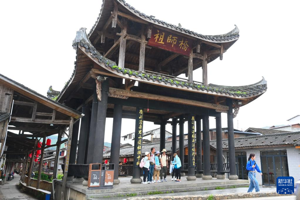 4月22日,游客在下梅村的“邹氏家祠”前拍照。