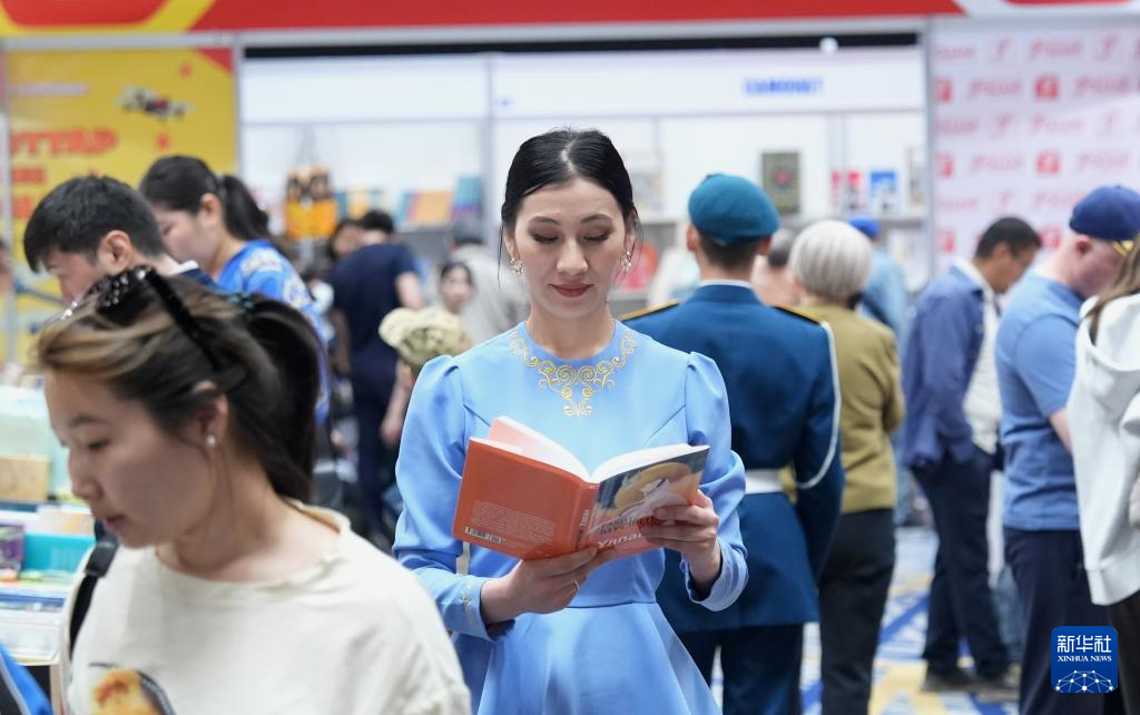 4月26日,一名女子在哈萨克斯坦首都阿斯塔纳举行的欧亚国际书展上阅读图书。