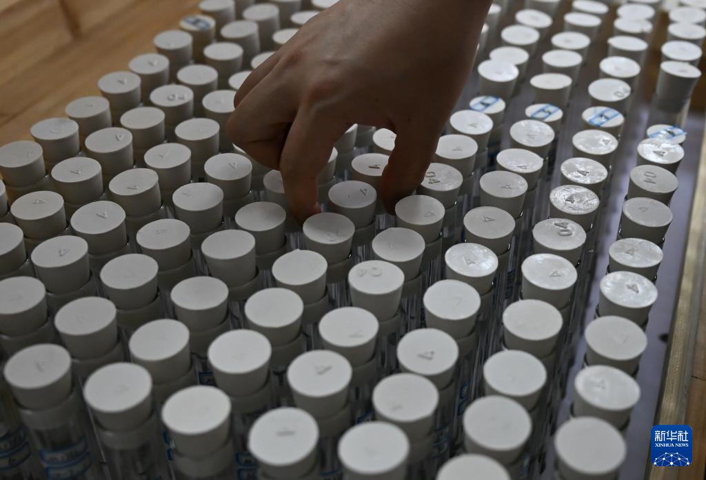 4月24日,荆州文物保护中心简牍工作室工作人员把修复的竹简保存在箱中。