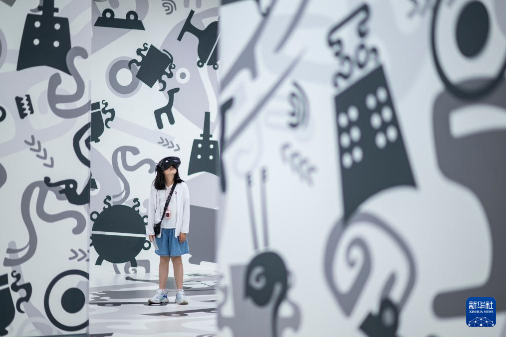 4月29日,一名小朋友使用VR设备体验《穿越青铜纪》。