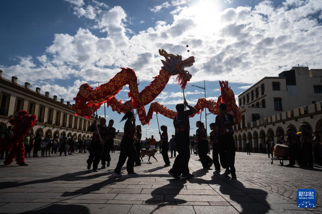5月4日,人们在阿根廷卢汉举行的“中国在卢汉”文化节上表演舞龙。