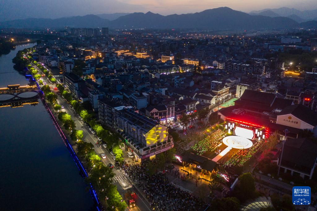 5月7日,浙江省建德市寿昌镇举行以“千年寿昌 遇见未来”为主题的音乐时装秀。本次时装秀活动融合音乐表演、服装走秀、传统舞龙表演等多元形式,是当地发展特色夜经济的主题活动之一。