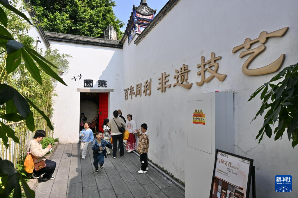 2025年3月8日,家长带领小朋友游览福州三坊七巷同利肉燕非遗文化体验馆。新华社记者 姜克红 摄
