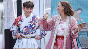 5月13日,游客在海南疍家博物馆体验捕捞游戏,感受疍家人生产方式。