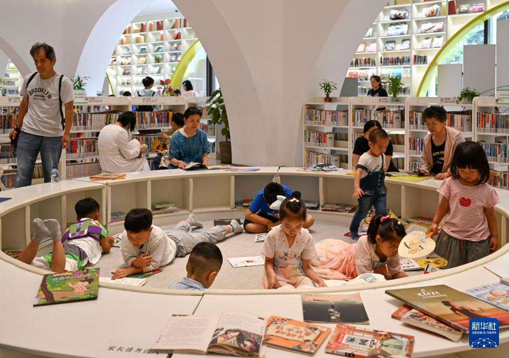 小朋友在上海徐家汇书院读书(5月17日摄)。