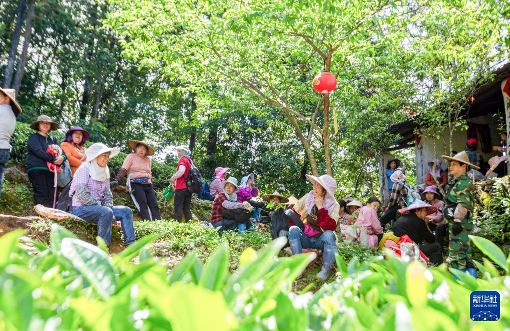 5月6日,采茶工在武夷山一处茶山空地休息交谈。