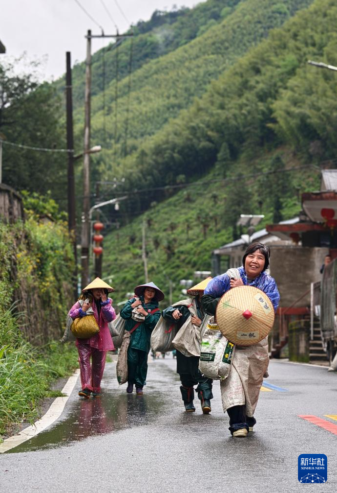 5月9日,在武夷山桐木村,采茶工采茶归来。