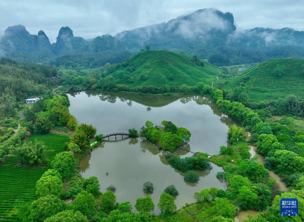 这是武夷山齐云峰景区一处山水茶园景观(5月8日摄,无人机照片)。