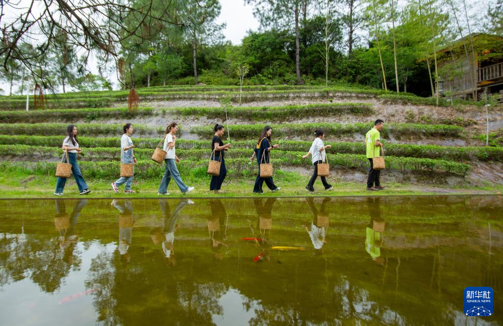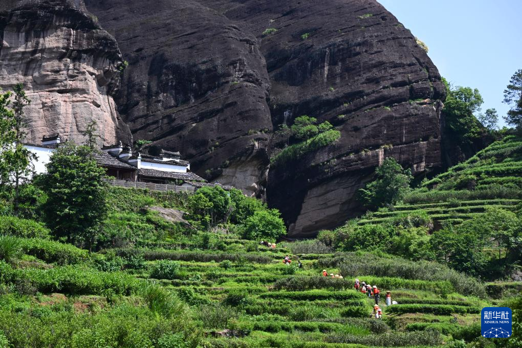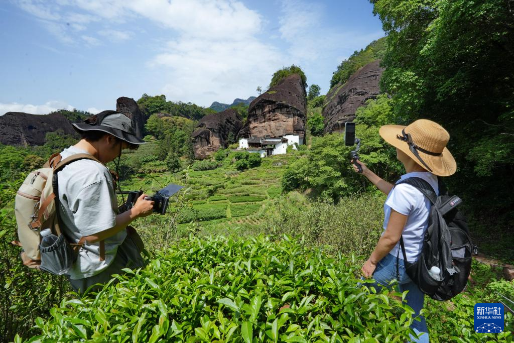 5月7日,在武夷山体验岩茶采摘制作的游客结伴出行。