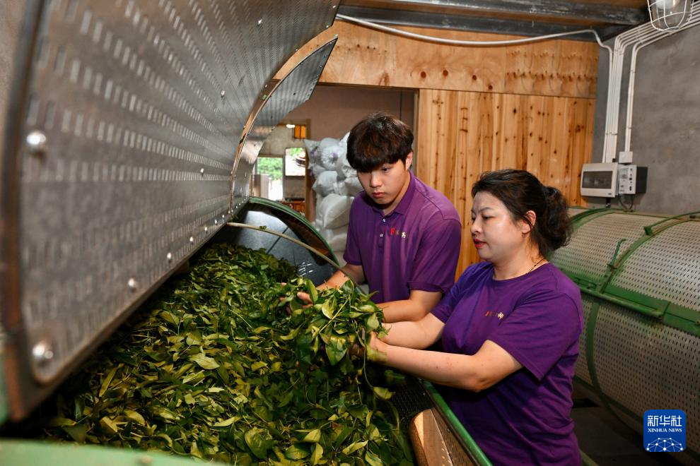 5月10日,国家级非物质文化遗产武夷岩茶(大红袍)制作技艺县(市)级代表性传承人刘峰在手工做青。