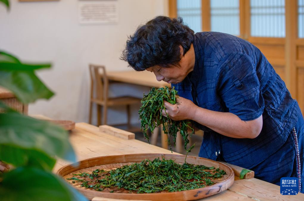 5月7日,国家级非物质文化遗产武夷岩茶(大红袍)制作技艺省级代表性传承人游玉琼展示岩茶传统制作技艺。