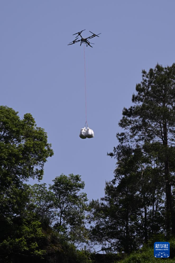 5月6日,武夷山茶园上空无人机在运送茶青。