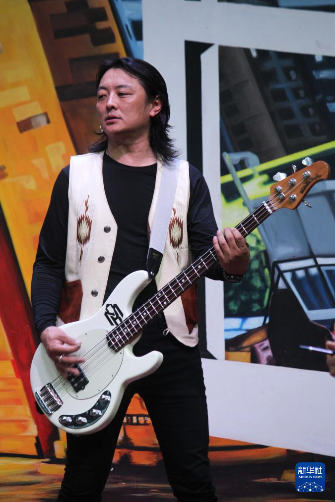 5月20日,“奈热”乐队在贝宁科托努中国文化中心表演。