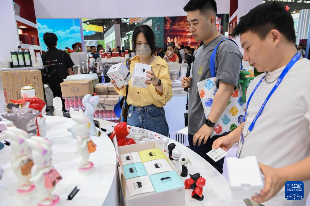 5月23日,人们在文博会“文创中国”展区选购三星堆文创产品。