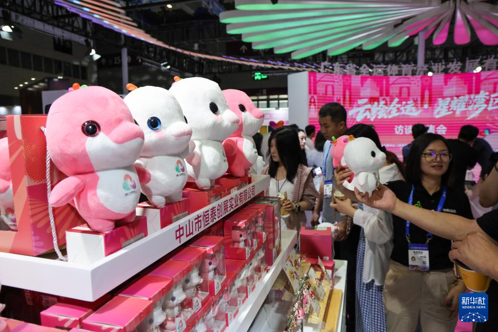 5月23日,观众在文博会现场选购第十五届全运会特许商品。