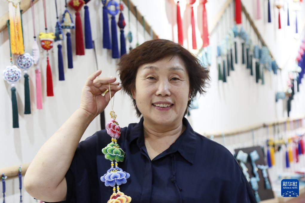 5月27日,河南省洛阳市汝阳县三屯镇丁沟村李阿婆香包第三代传人李水琴在展示制作的香包。